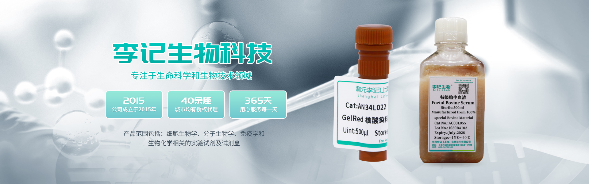 感恩返場|血清半價、胰酶&雙抗買2送1、細胞衛士買1送1和元李記在2023年由和元生物(代碼:688238)和李記生物合資成立的,集研發、生產、銷售為一體的國產生物試劑公司,專注于生命科學和生物技術領域,致力于為客戶提供先進技術、方便易用、經濟高效的產品,產品范圍包括:細胞生物學、分子生物學、免疫學和生物化學相關的實驗試劑及試劑盒。目前在全國40余座城市均有授權代理;直接服務終端超千家,涵蓋CRO、藥企、高校、醫院和科研院所;李記產品已幫助客戶發表數百篇SCI,多篇CNS。